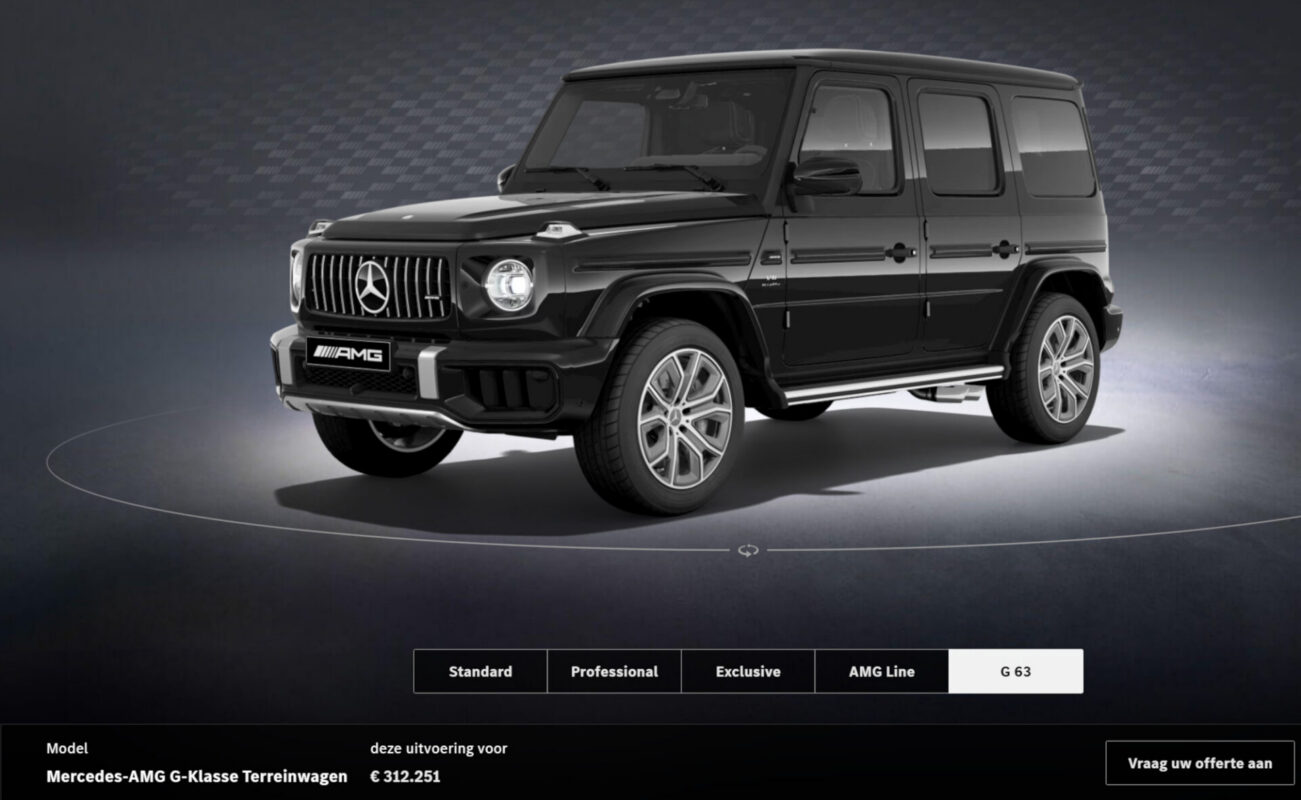 Mercedes heeft dus nul reden om de prijs vriendelijk te maken. Voor veel kopers is het juist aantrekkelijk dat de G63 belachelijk duur is. Als hij goedkoop wordt, is het geen statussymbool meer maar een dure SUV. En dan hebben we het nog niet over de opties:
